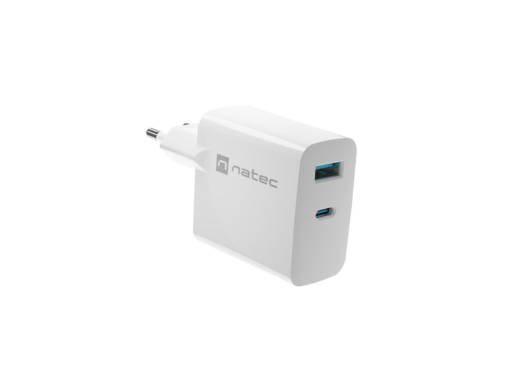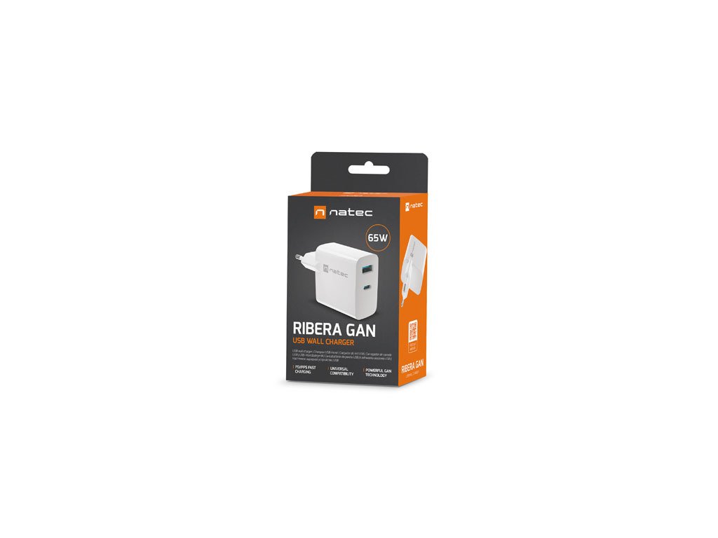 Univerzálna USB nabíjačka Natec RIBERA GaN 1X USB-A + 1X USB-C 65W, Biela NUC-2144
