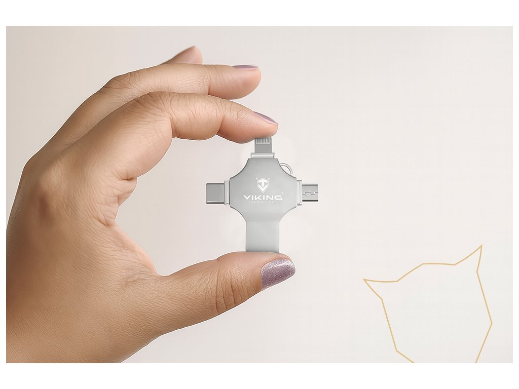 Viking USB flash disk 16GB 4v1 • 4 konektory: USB-A, USB-C, Micro USB, Lightning • Varianta 16 GB • podpora FAT32 a exFAT • vhodný pro iOS, Android, PC i Mac • Kompaktní a lehké provedení • hmotnost 13?g Viking USB flash disk 16GB 4v1 Lehký a odolný USB flash disk s konektory Apple Lightning, Micro USB, USB-C a USB-A je ideálním řešením pro snadný přenos a zálohování dat. K dispozici ve variantě 16 GB umožňuje rychlý a spolehlivý přenos souborů mezi různými zařízeními – od telefonů po počítače. Klíčové vlastnosti: • USB flash disk se čtyřmi konektory USB-A, USB-C, Micro USB a Apple Lightning • Kapacita 16 GB pro uložení fotek, videí, hudby a dokumentů • Kompaktní a lehké provedení vhodné pro každodenní nošení • Umožňuje přehrávání a prohlížení souborů přímo z externí paměti • Podpora formátů FAT32 a exFAT pro přenos i velkých souborů • Možnost zálohování kontaktů a prohlížení souborů bez aplikací třetích stran • Podpora nejnovější verze operačních systémů iOS, OSX, Windows, Linnux a Android Snadný přenos dat mezi všemi zařízeními Díky čtyřem nejpoužívanějším konektorům můžete jednoduše přenášet a zálohovat fotografie, hudbu, filmy i další soubory mezi zařízeními Apple, Android, PC a notebooky. Tento praktický flash disk vám zajistí pohodlný a rychlý přístup ke všem datům kdykoliv a kdekoliv. Kompaktní a lehké provedení z něj dělá ideálního společníka pro každodenní použití. Skvělé řešení pro rozšíření paměti zařízení i pro bezpečné uložení dokumentů, fotografií, videí a dalších souborů. Pro Apple zařízení je potřeba doinstalovat aplikace iUSB Pro - zdarma na Appstore. Obsah balení: 1 ks - Viking USB flash disk 16GB 4v1 Technické specifikace: • Model: VIKING USB FLASH 16GB • Kapacita: 16GB • Rozměr: 46 x 46 x 5 mm • Hmotnost: 13g • Podpora systémů: FAT32, exFAT • Kompatibilní: iOS, OSX, Windows, Linnux a Android • Barva: Stříbrná • Podporované formáty: - Fotografie: jpg, gif, tif, png, bmp, jepg, fiff - Video: mov, mpg, vob, wmv, rmvb, avi, mp4, mkv, flv, mpg, rm, 3gp - Hudba: mp3, wav, acc, m4a, m4r • Dokumenty: doc, ppt, xls, xlsx, pdf, pages, numbers, htm, html • Rychlosti čtení/zápisu pro USB3.0 ?30MB/s / ?20MB/s • Rychlost čtení/zápisu pro Lightning, USB-C, micro USB: ?30MB/s / ?20MB/s • Podpora šifrování: ANO • Certifikace: FCC, RoHS, CEDodatočné parametre