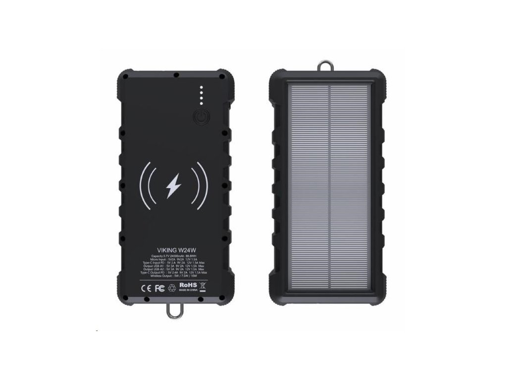 Viking solární outdoorová powerbanka W24W 24000 mAh, bezdrátové nabíjení VSPW24W