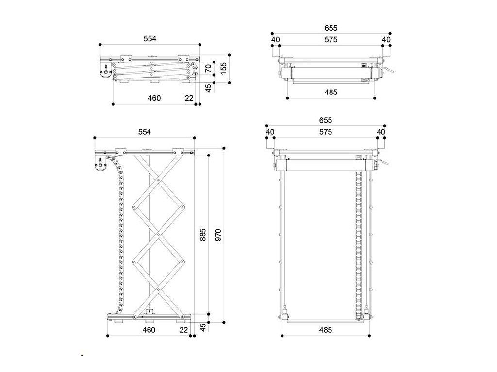 - Rozmery uzavretého výťahu 575 x 155 x 554 mm (Š x V x H)