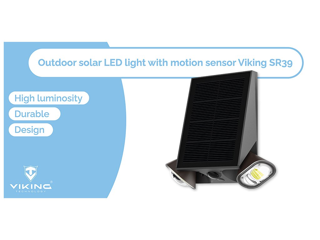 Vonkajšie solárne LED svetlo Viking SR39/Pohybový senzor/800 lm/IP44/4 režimy/denná biela VSR39