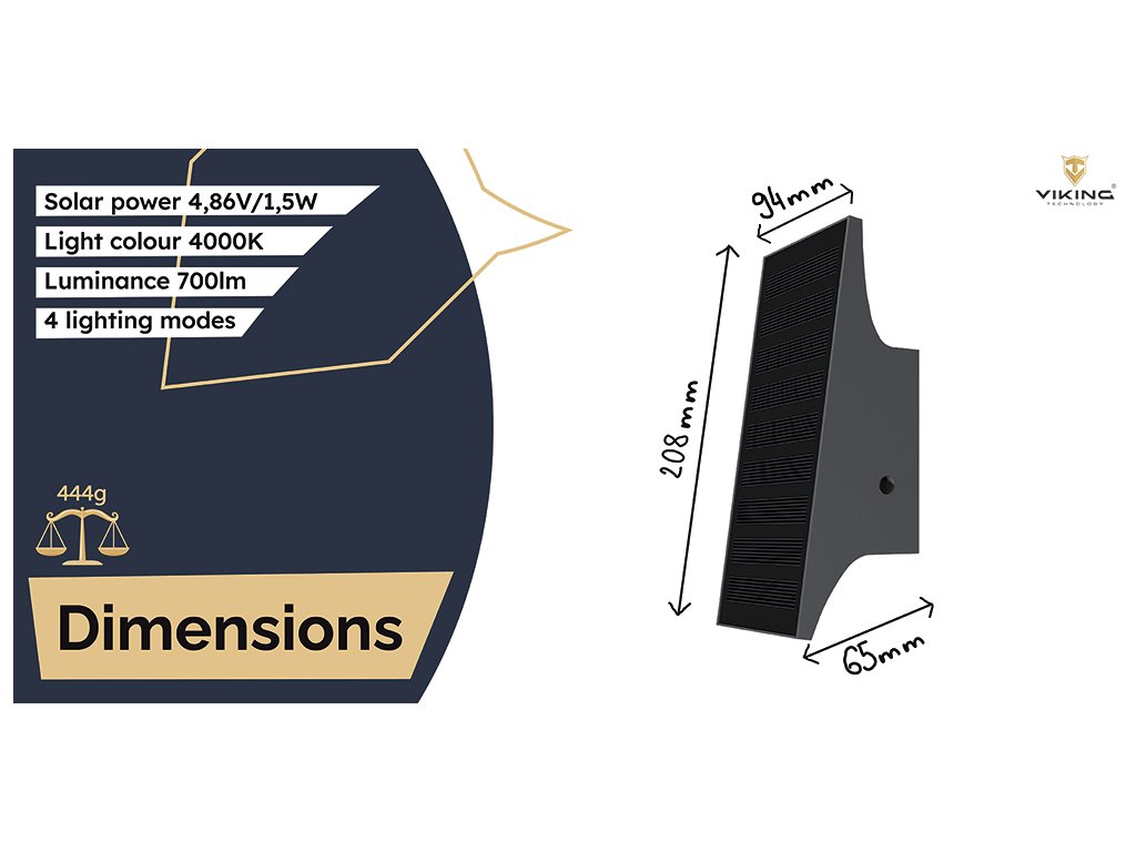 Vonkajšie solárne LED svetlo Viking SR83/700lm/solárne napájanie/4000K (denná biela)/4 režimy VSR83