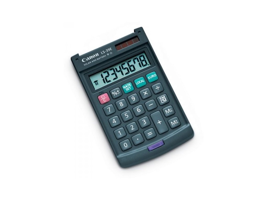 vrecková kalkulačka CANON LS-39E, 8 miest, solárne napájanie + batérie, prepočet EUR 4046A014