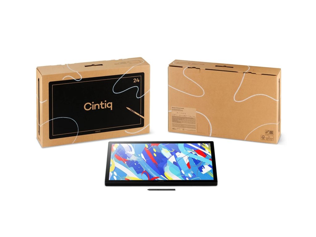 Wacom Cintiq 24 Touch *Důvěra kreativců po celém světě pro spolehlivý výkon perového displeje *Kombinuje přesnost a ovládání gesty v jednom zařízení *Prostorný 23,8'' displej s rozlišením 2,5K a možností multidotykového ovládání 10 prsty *Součástí je nastavitelný stojan (16°–69°) pro ergonomické pohodlí *Kompatibilní s VESA pro flexibilní studiové nastavení *Pro Pen 3 se přizpůsobí vašemu pracovnímu postupu a preferencím úchopu *Elegantní design s vylepšenou správou kabelů *Bez ventilátoru, stabilní a stvořený pro dlouhé hraní her Informace o displeji Rozlišení obrazovky: WQHD 2560 x 1440 pixelů Velikost obrazovky: 23,8 palce Technologie: IPS Sklo / povrch: AG Sklo Aktivní plocha: 527 × 296 mm (20,7 x 11,7 palce) Poměr stran: 16:9 Podporované rozlišení: 640 x 480 při 60 Hz 720 x 480 při 60 Hz 720 x 576 při 50 Hz 800 x 600 při 60 Hz 1024 x 768 při 60 Hz 1280 x 720 při 50/60 Hz 1280 x 1024 při 60 Hz 1600 x 1200 při 60 Hz 1920 x 1080 při 50/60 Hz 2560 x 1440 při 60 Hz Rozteč pixelů: 0,2058 (V) x 0,2058 (Š) mm Pozorovací úhel: 178 stupňů (89/89) H / 178 stupňů (89/89) V (typ) Barevná hloubka: 16,7 milionu (8 bitů), 8bit x RGB = 24bit Poměr pokrytí barevného gamutu: sRGB 100 % (CIE1931) (typ) Kontrastní poměr: 1000:1 (typ) Jas: 350 cd/m2 (typ) Doba odezvy (G2G): 12 ms (typ) Specifikace pera Úrovně tlaku pera: 8192 úrovní Typ pera: Citlivé na tlak, bezdrátové, bez baterií, selektivní rukojeti/vyvážení/boční přepínač Počet přepínačů: 3 boční přepínače Podpora naklápění pera: 60 stupňů Výška pro čtení: 10 mm Rozlišení pera: 5080 lpi Technologie pera: Technologie elektromagnetické rezonance Maximální míra hlášení: 240 hlášení/sekundu Rozměry pera: 160 × 8,4 mm Hmotnost pera: 9,1 g Specifikace dotykového ovládání Vícedotykové ovládání: Ano Dotyková technologie: Projektovaná kapacitní technologie Dotyková kapacita: 10 prstů Konektivita I/O porty: 1x HDMI typu C (mini HDMI) 1x USB typu C Rozměry a hmotnost: Rozměry produktu (D x Š x V): 340 × 568 × 21 mm Hmotnost produktu: 5 kg Systémové požadavky Systémové požadavky: Windows 10 nebo novější (nejnovější servisní balíček/build), macOS 13 nebo novější, Android™ 8.0 a vyšší Hardwarové požadavky: Port USB-C s režimem DisplayPort™ Alt* nebo port HDMI a port USB, přístup k internetu pro stažení ovladače. Pro dosažení maximálního rozlišení a obnovovací frekvence na Wacom Cintiq 24 musí porty hostitelského počítače podporovat rozlišení 2560 x 1440 při 60 Hz. *Podporován je také Thunderbolt 3 nebo novější.Dodatočné parametre
