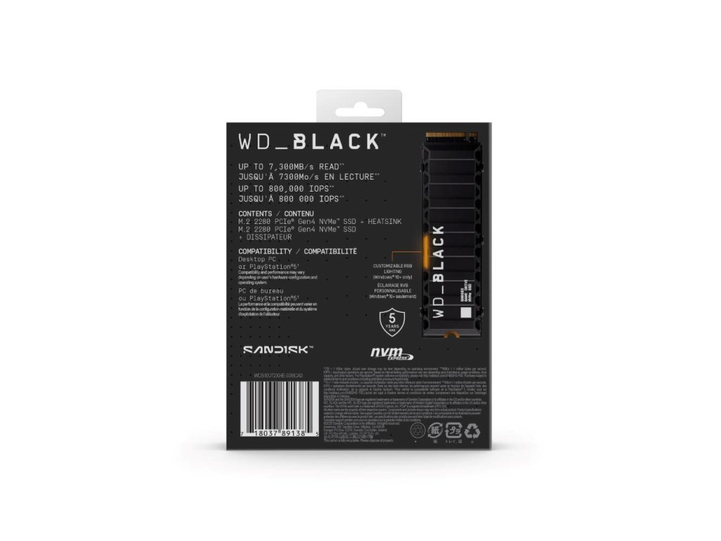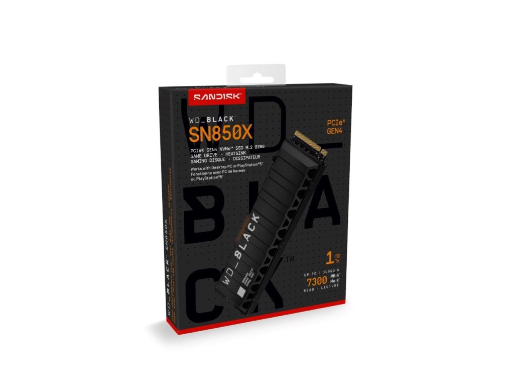 WD BLACK SSD NVMe 1TB PCIe SN850X Powered by SanDisk, Gen4, (R:7300, W:6300MB/s), Chladič WDS100T2XHE