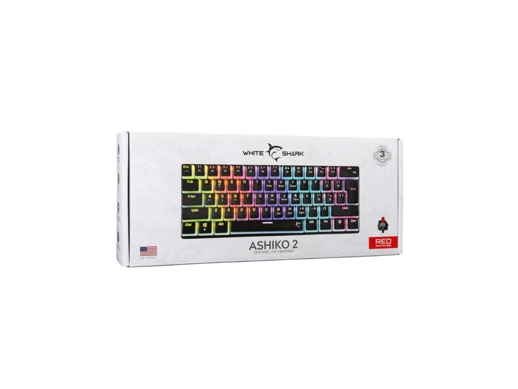 White Shark Gaming keyboard ASHIKO 2, red switch, US, black ASHIKO-2-B-US-RED.SW