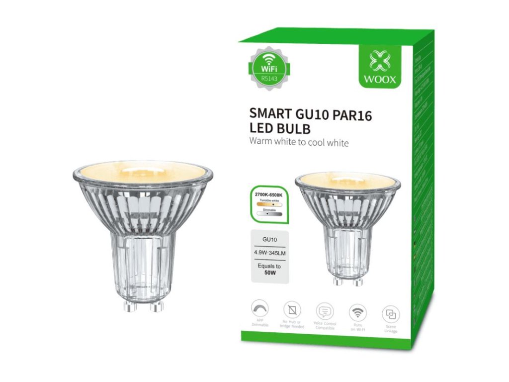Prevezmite kontrolu nad vnútorným alebo vonkajším osvetlením pomocou tohto bodového svietidla WOOX R5143 Smart PAR16 GU10 s čistým dizajnom, ktoré sa pripája priamo k vášmu Wi-Fi routeru a ponúka diaľkové ovládanie ako súčasť vášho systému domácej automatizácie. Ideálna a energeticky úsporná náhrada akéhokoľvek bežného halogénového bodového svietidla. WOOX R5143 môžete pripojiť k svojmu WiFi routeru doma bez potreby rozbočovača alebo inej služby.