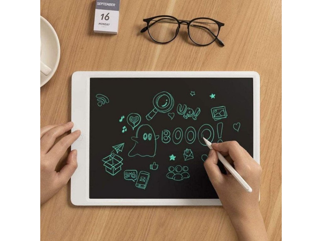 Xiaomi Mi LCD Writing Tablet 13.5 - jednoduchý zápisník, 13-palcový LCD displej, černé pozadí, zelené písmo. Nemá paměť - popíšete jednu stránku, poté vymažete kompletně jedním tlačítkem. Magnetické pero je součástí balení. Ideální pro děti na kreslení nebo na poznámky do práce či do domácnosti. Výdrž na knoflíkovou baterii cca rok při 100x smazaném displeji denně. Xiaomi Mi LCD kreslící tablet s přibaleným stylusem vám umožní zapisováni poznámek, kreslení, prostě cokoliv co vás napadne. Díky velkému displeji 13,5'' a nízké hmotnosti bude práce s ním opravdu pohodlná. Tablet má tlačítko pro smazání, kdy pouhým jedním stiskem vše zmizí a můžete začít psát a kreslit nové nápady. Zároveň má tablet tlačítko pro uzamčení mazacího tlačítka, aby se nestalo, že si omylem vaše poznámky smažete. Dotykové pero - stylus, je na boku uchycen pomocí magnetu. Parametry - rozměry 318 x 225 x 7 mm - hmotnost: 0,345 kg - tělo tabletu vyrobeno z plastu ABS - typ displeje LCD - knoflíková baterie: CR2025Dodatočné parametre