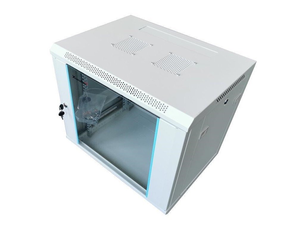 XtendLan 19" nástěnný rozvaděč 12U 600x450, nosnost 60 kg, skleněné dveře, rozložený, šedý WS-12U-64-GREY-U-P