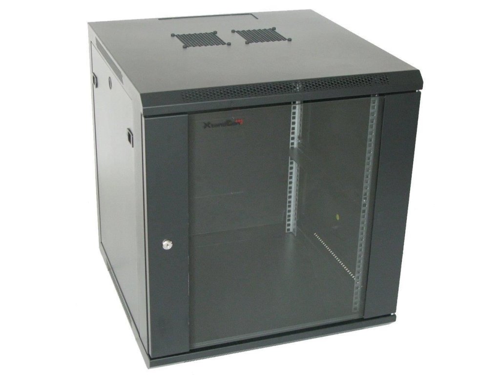 XtendLan 19" nástěnný rozvaděč 15U 600x600, nosnost 60 kg, skleněné kouřové dveře, svařovaný, černý WS-15U-66-BLACK