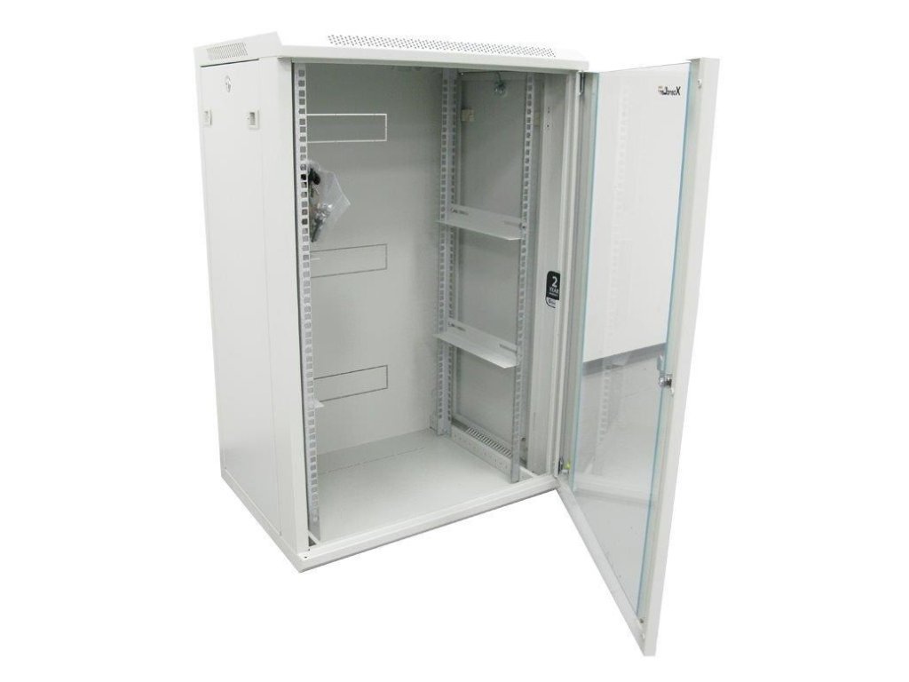 XtendLan 19" nástěnný rozvaděč 22U 600x450, nosnost 60 kg, skleněné dveře, svařovaný, šedý WS-22U-64-GREY-P