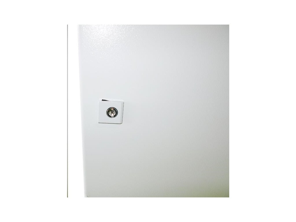Vonkajší nástenný rozvádzač vyrobený z válcovanej ocele s hrúbkou 1,5 mm. Trojvrstvová povrchová úprava. Vlastnosti: dvere - plné, otvárateľné o 110°, výmena smeru otvárania, tesnenie z penového polyuretánu zadný kryt - plný bočný kryt - plný horný kryt - plný