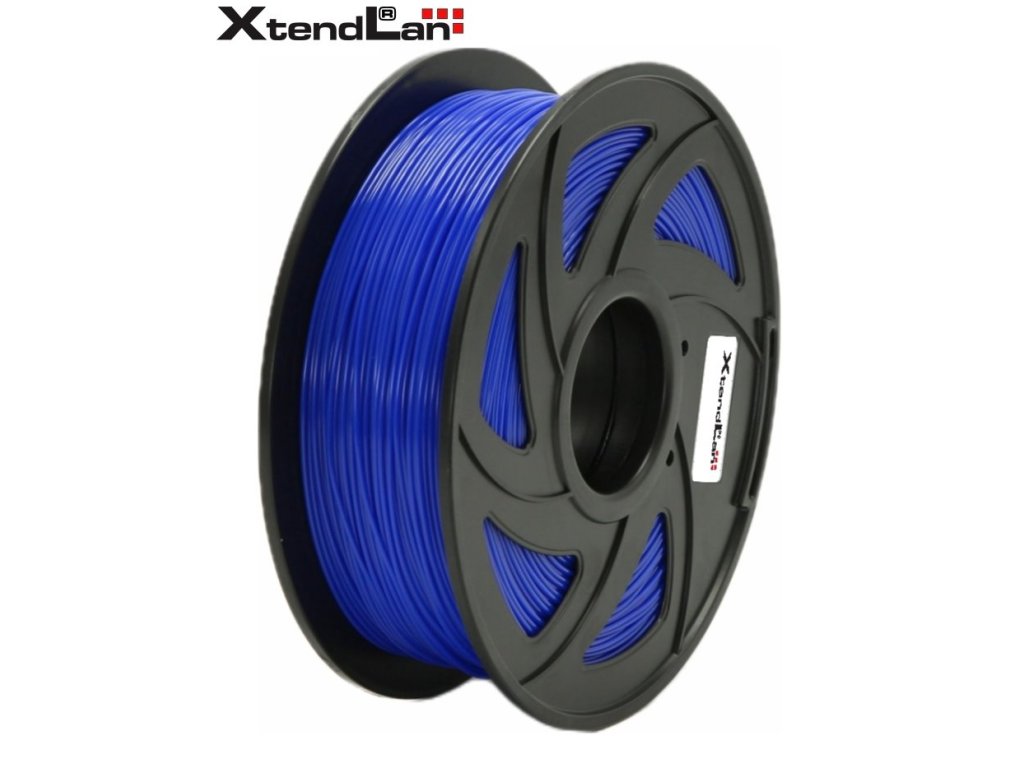 XtendLAN PETG filament 1,75 mm azurově modrý 1 kgPlastové vlákno (filament) pro 3D tisk, v návinu na cívce. PET-G (PolyEtylénTereftalát Glykolem modifikovaný) je materiál velmi známý díky plastovým lahvím. PETG v sobě spojuje to nejlepší z vlastností ABS a PLA pro 3D tisk. Jde o pevný a houževnatý materiál. Odolností se materiál blíží polykarbonátům. Vyznačuje se velmi malým tepelným smrštěním a je vhodný pro tisk i velkých objektů. Má velkou odolnost proti rozpouštědlům a kyselinám. Odolává vysokým i nízkým teplotám. Při 3D tisku má velmi dobrou přilnavost k podložce. Vytištěný předmět lze tepelně leštit. Filament je chráněný vakuovým balením a v každém balení je přítomen vysoušecí sáček, který zabraňuje případnému působení vlhkosti na materiál. Dodáváno v kartónovém obalu s okénkem pro kontrolu barevnosti.