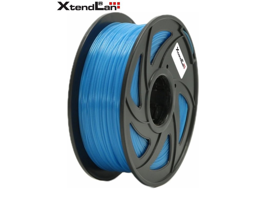 XtendLAN PETG filament 1,75 mm ledově modrý 1 kgPlastové vlákno (filament) pro 3D tisk, v návinu na cívce. PET-G (PolyEtylénTereftalát Glykolem modifikovaný) je materiál velmi známý díky plastovým lahvím. PETG v sobě spojuje to nejlepší z vlastností ABS a PLA pro 3D tisk. Jde o pevný a houževnatý materiál. Odolností se materiál blíží polykarbonátům. Vyznačuje se velmi malým tepelným smrštěním a je vhodný pro tisk i velkých objektů. Má velkou odolnost proti rozpouštědlům a kyselinám. Odolává vysokým i nízkým teplotám. Při 3D tisku má velmi dobrou přilnavost k podložce. Vytištěný předmět lze tepelně leštit. Filament je chráněný vakuovým balením a v každém balení je přítomen vysoušecí sáček, který zabraňuje případnému působení vlhkosti na materiál. Dodáváno v kartónovém obalu s okénkem pro kontrolu barevnosti.