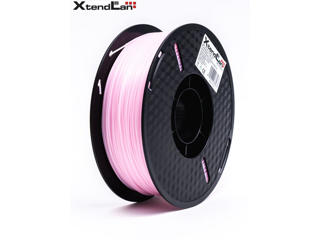 XtendLan PLA filament 1,75 mm svítící červený 1 kgPlastové vlákno (filament) pro 3D tisk, v návinu na cívce. PLA (PoLylactic Acid, kyselina polymléčná) je nejpopulárnější 3D tiskový materiál. Především se při jeho tisku neuvolňuje nepříjemný zápach a není problémem tisk na neohřívanou podložku. Je rozměrově stabilní s velmi malým tepelným smrštěním a je vhodný pro tisk i velkých objektů. Jde o biologicky odbouratelný materiál. Není vhodný do vlhkého prostředí. Při 3D tisku má velmi vhodnou přilnavost k podložce - nepotřebuje, aby podložka byla ohřívána a zároveň lze výrobek snadno z podložky sejmout. Vytištěný předmět lze ručně brousit a lakovat. Filament je chráněný vakuovým balením a v každém balení je přítomen vysoušecí sáček, který zabraňuje případnému působení vlhkosti na materiál. Dodáváno v kartónovém obalu s okénkem pro kontrolu barevnosti.