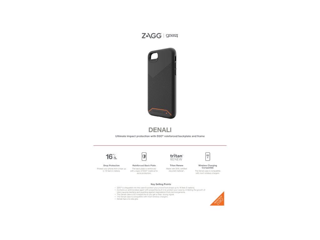 Ochranný kryt, který díky materiálu D3O zařízení ochrání při pádech z výšky až 5 metrů. Povrch krytu je navíc ošetřen antimikrobiální technologií, díky které dokáže eliminovat až 99,9 % běžných povrchových bakterií. Při výrobě krytu byly použity také recyklované plasty Tritan Renew, certifikovaný materiál, který je mimo jiné vytvořen z plastového odpadu ze skládek a oceánů. Cesta eco-friendly udržitelného výběru, bez snížení nároků na ochranu nebo styl.Dodatočné parametre