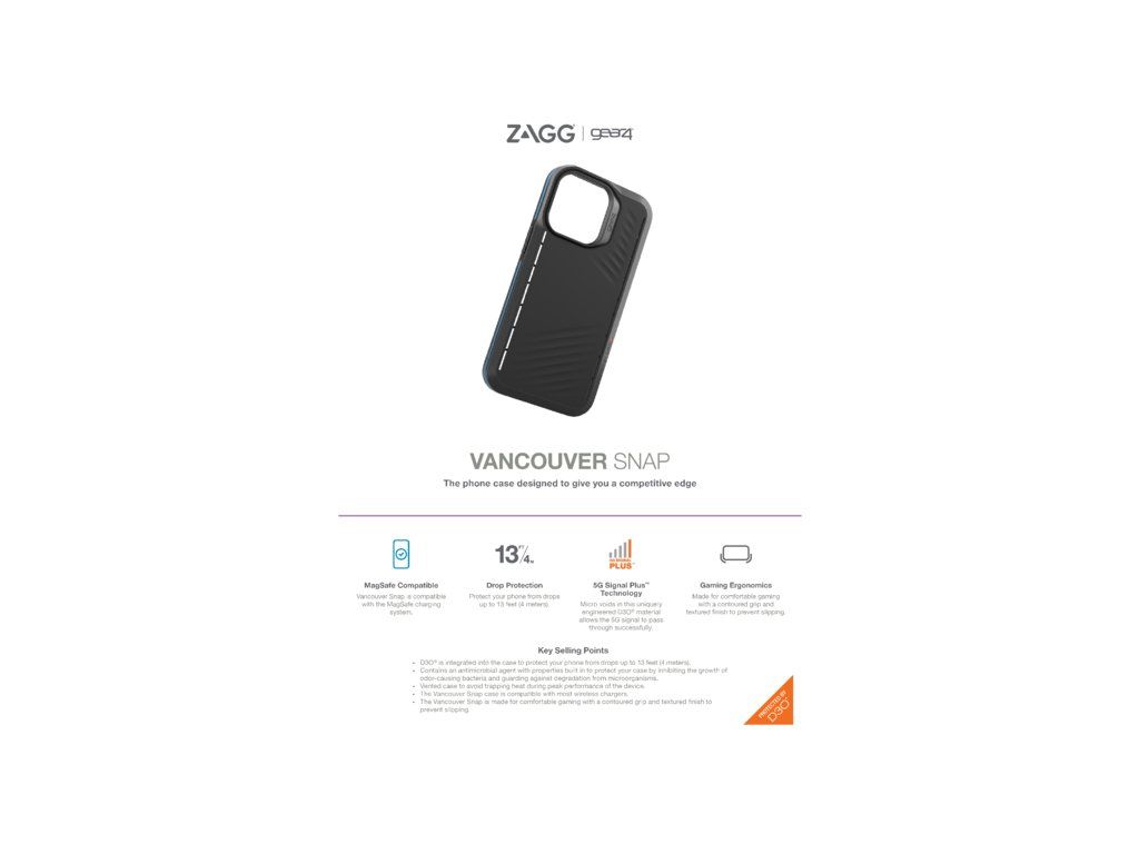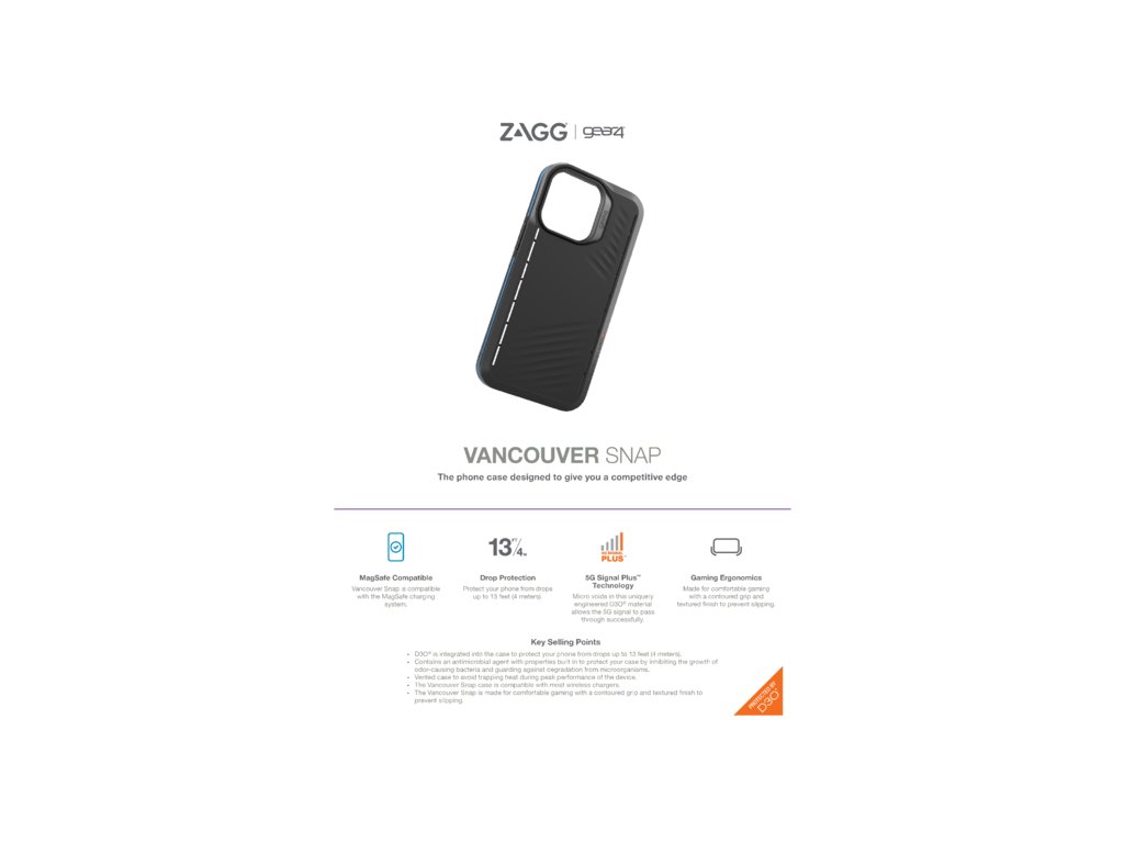 Kryt kompatibilní s MagSafe vyrobený z materiálu D3O. Zařízení chrání při pádech z výšky až 4 metrů. Kryt je vytvořen tak aby vyhovoval náročným požadavkům hráčů. Povrch je obohacen o antimikrobiální vrstvu. Kryt je vytvořen tak aby uživateli poskytoval maximální pohodlí při hraní her. Větrací kanálky v těle krytu pak zajišťují konvekční chlazení vašeho zařízení, díky čemuž se zbytečně nepřehřívá a nezpomaluje. Barva: černáDodatočné parametre