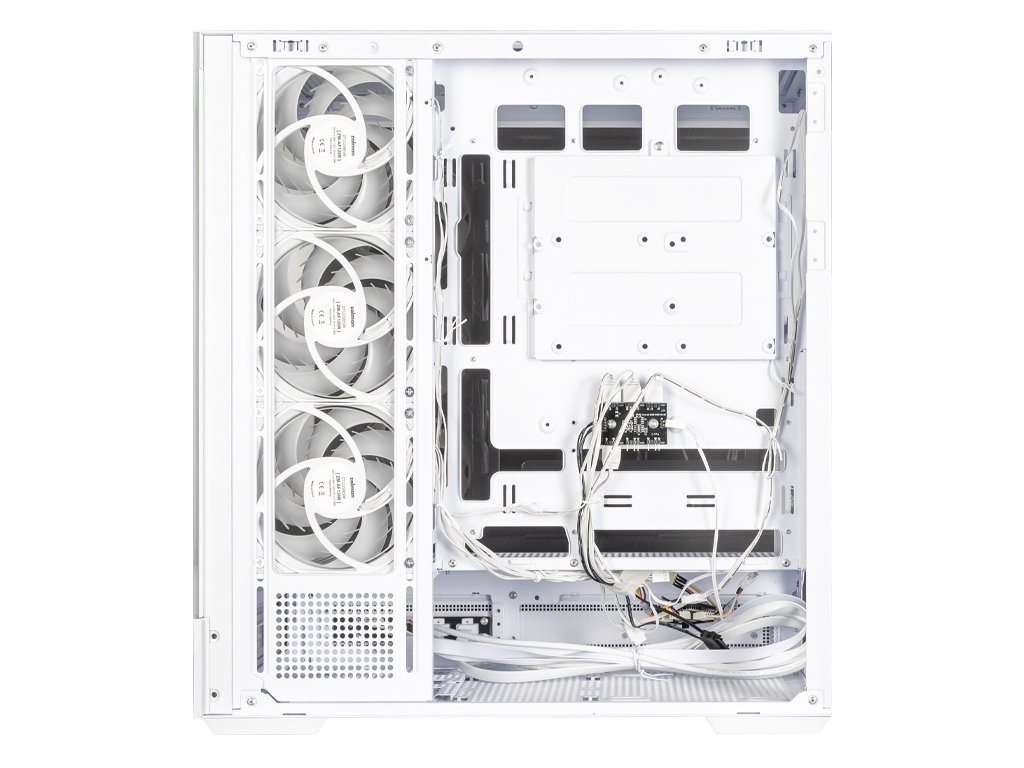 Skříň podporuje všechny standardní formáty základních desek včetně ATX, mATX a Mini-ITX a nabízí rotovatelné PCI sloty pro flexibilní instalaci grafických karet ve vertikální nebo horizontální poloze. Pokročilý ARGB systém s kontrolním hubem umožňuje vytváření různých světelných efektů.