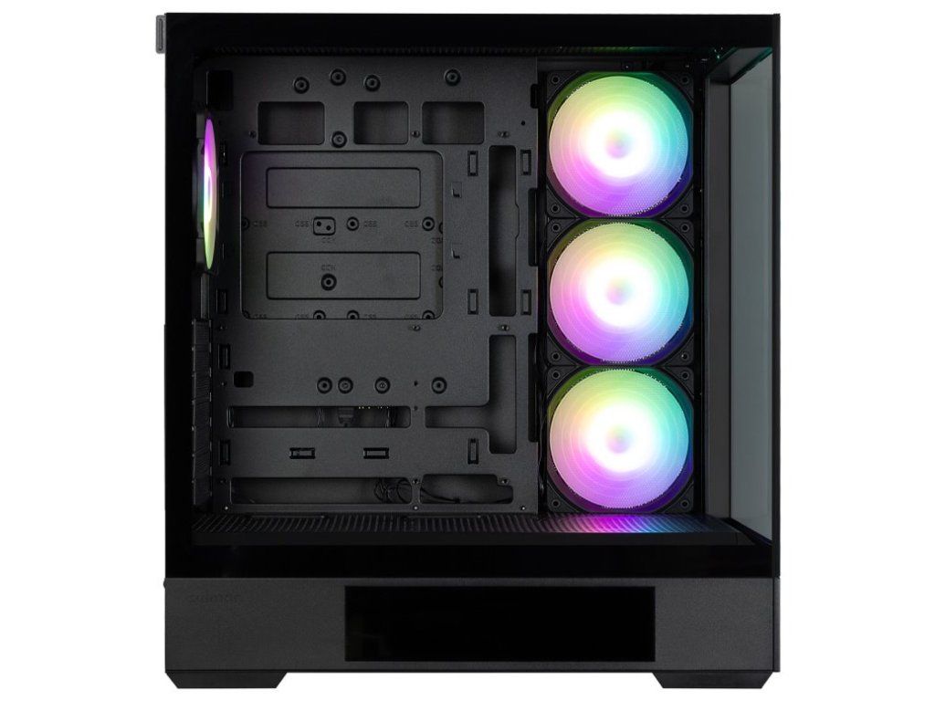 Skříň podporuje všechny standardní formáty základních desek včetně ATX, mATX a Mini-ITX a nabízí rotovatelné PCI sloty pro flexibilní instalaci grafických karet ve vertikální nebo horizontální poloze. Pokročilý ARGB systém s kontrolním hubem umožňuje vytváření různých světelných efektů.