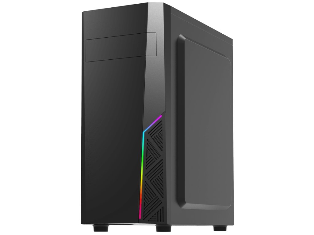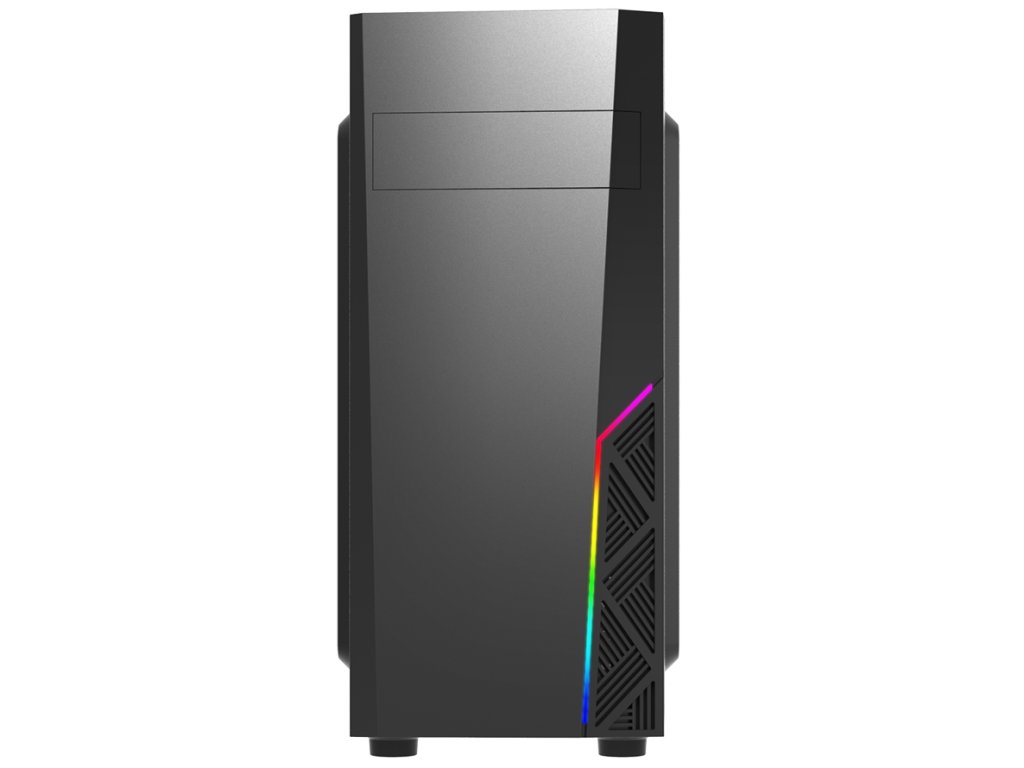Počítačová skříň v provedení Middle tower nabízí dvě 3,5" a čtyři 2,5" pozice pro pevné a SSD disky. Z externích pozic je k dispozici jedna 5,25" pozice. Na horním panelu jsou umístěny dva USB 2.0 porty, jeden USB 3.0 port, sluchátkový výstup a vstup pro mikrofon. Skříň je osazena jedním ventilátorem o velikosti 120 mm na zadní straně. Ve skříni je dostatek prostoru pro chladič CPU do výšky až 160 mm a grafickou kartu o délce až 295 mm. Skříň disponuje RGB podsvícením předního panelu a je dodávána bez zdroje.