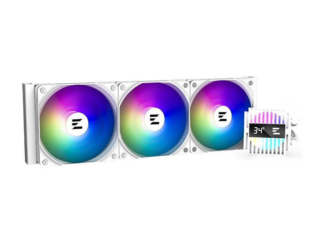 Vodní chladič určený pro chlazení široké škály procesorů. Vyznačuje se vysokou kvalitou, výkonem a spolehlivostí. Disponuje třemi 120 mm velkými ventilátory s ARGB podsvícením. Odolné opletené hadice zaručují díky dostatečně širokému průměru plynulý průtok chladicí kapaliny. Chladič je dodáván se speciální teplovodivou pastou ZM-STC10 pro maximální odvod generovaného tepla.